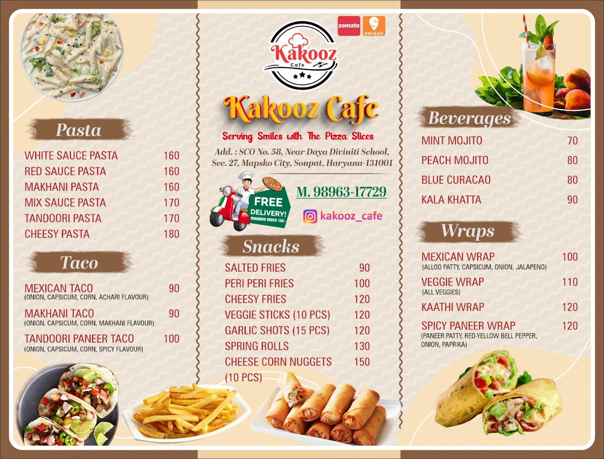 Welcome to Kakooz Cafe, a delightful culinary haven nestled in Sonipat, Haryana. This charming cafe offers a diverse menu that tantalizes your taste buds and invites food lovers of all kinds.
